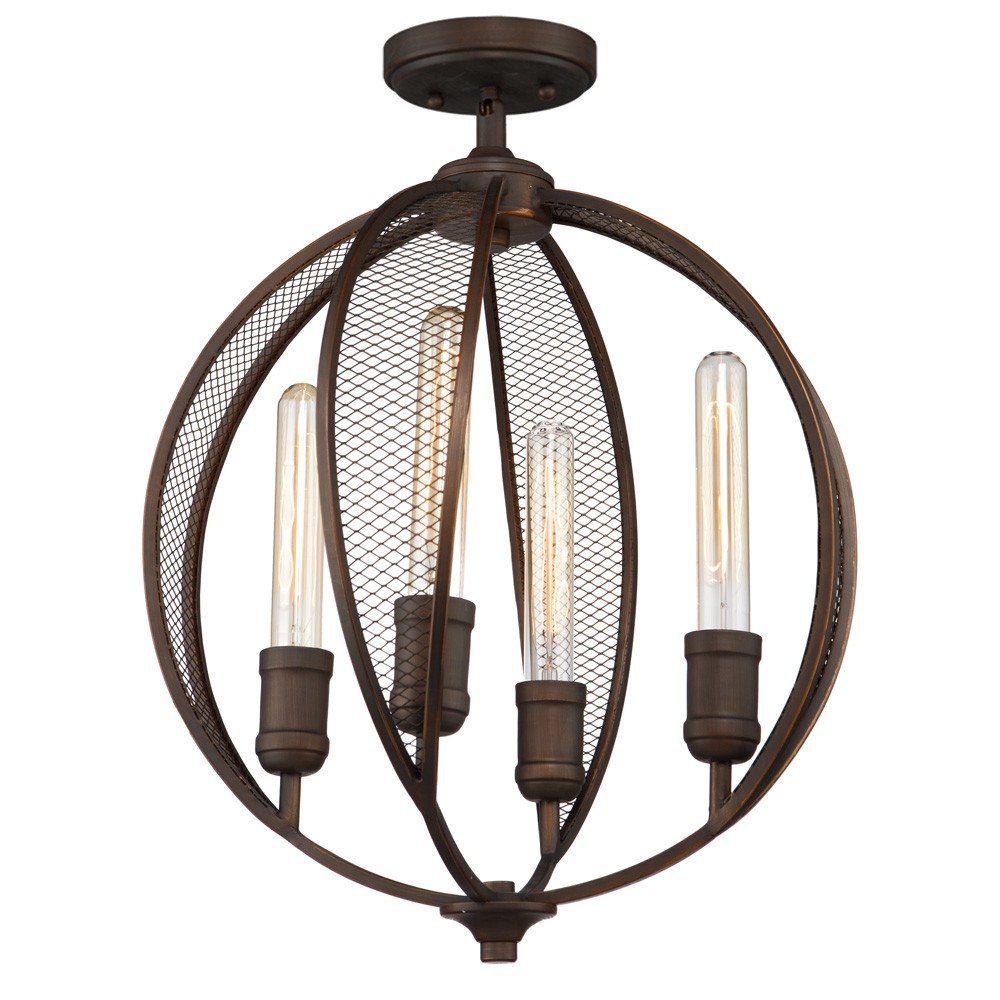 DESCRIPTION : The "Linden" collection features a rich oil rubbed bronze frame complimented with tubular arms, and adorned with metal mesh. Comes with a hang straight for sloped ceilings and extra rods for height adjustment.