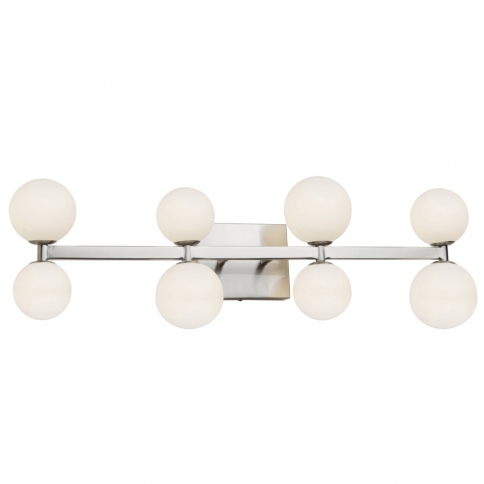 DESCRIPTION : The Hadleigh collection of bathroom vanities features opal multi size glass spheres implemented on a plated brushed nickel frame. The LED light source illuminates the glass spheres in a spectacular fashion. (Multiple sizes available). View all vanity lighting options here.