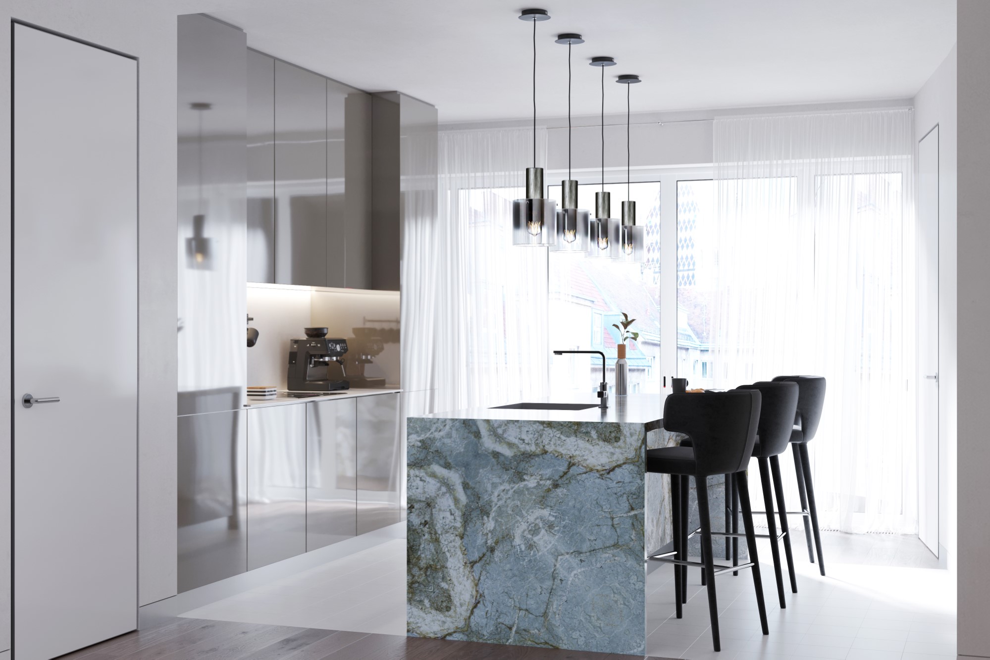 DESCRIPTION : The "Henley Collection" of chandeilers features satin black metal work complimented with half mirror glassware. (Top of the glass is mirrored and bottom is clear). (also available in satin aluminum with clear glassware)
