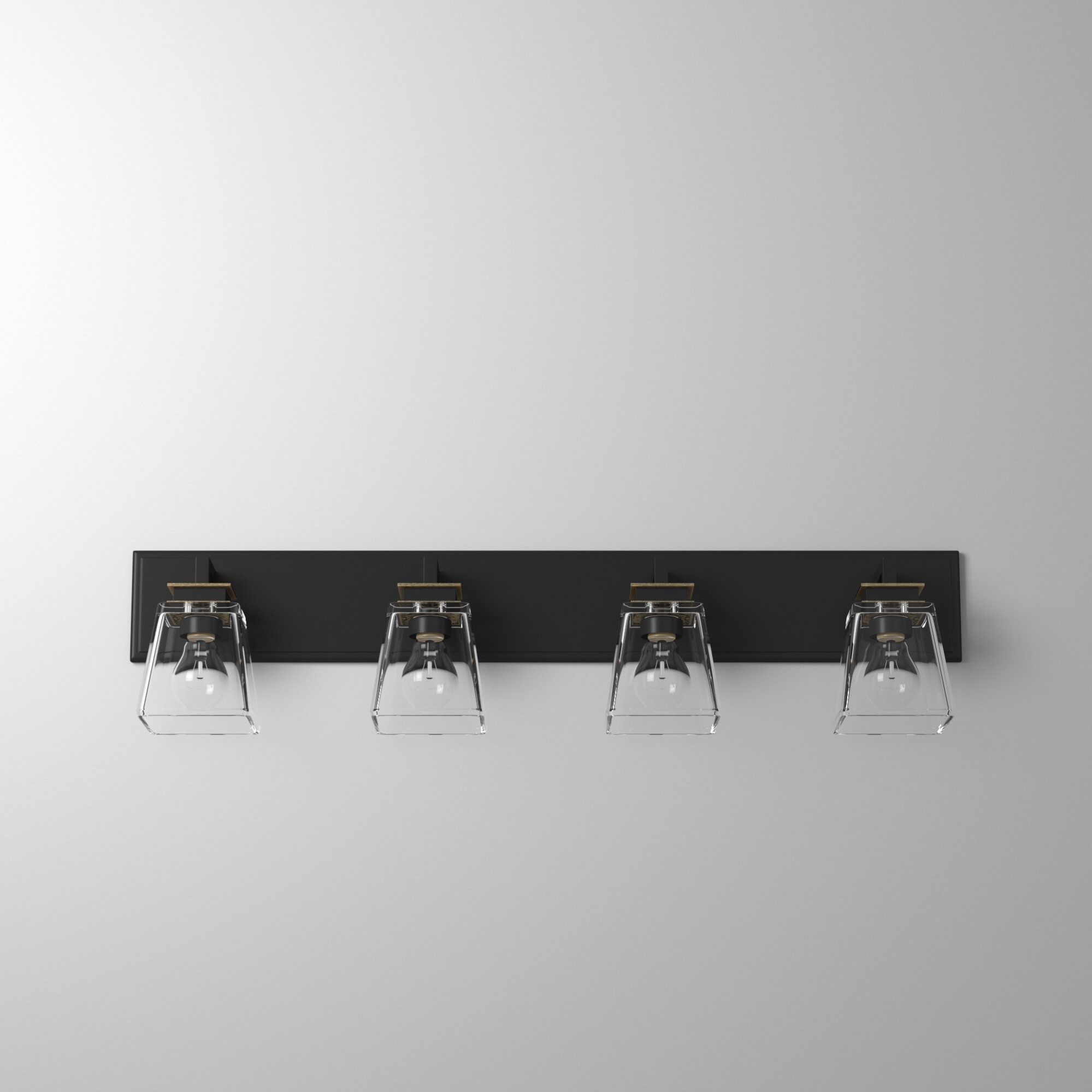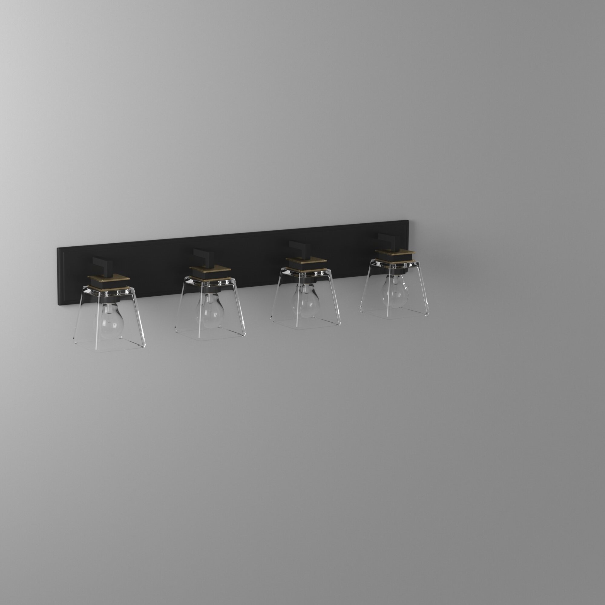 DESCRIPTION : The "Eastwood" collection bathroom vanity features thick clear glassware with a black frame and plated brass accents.