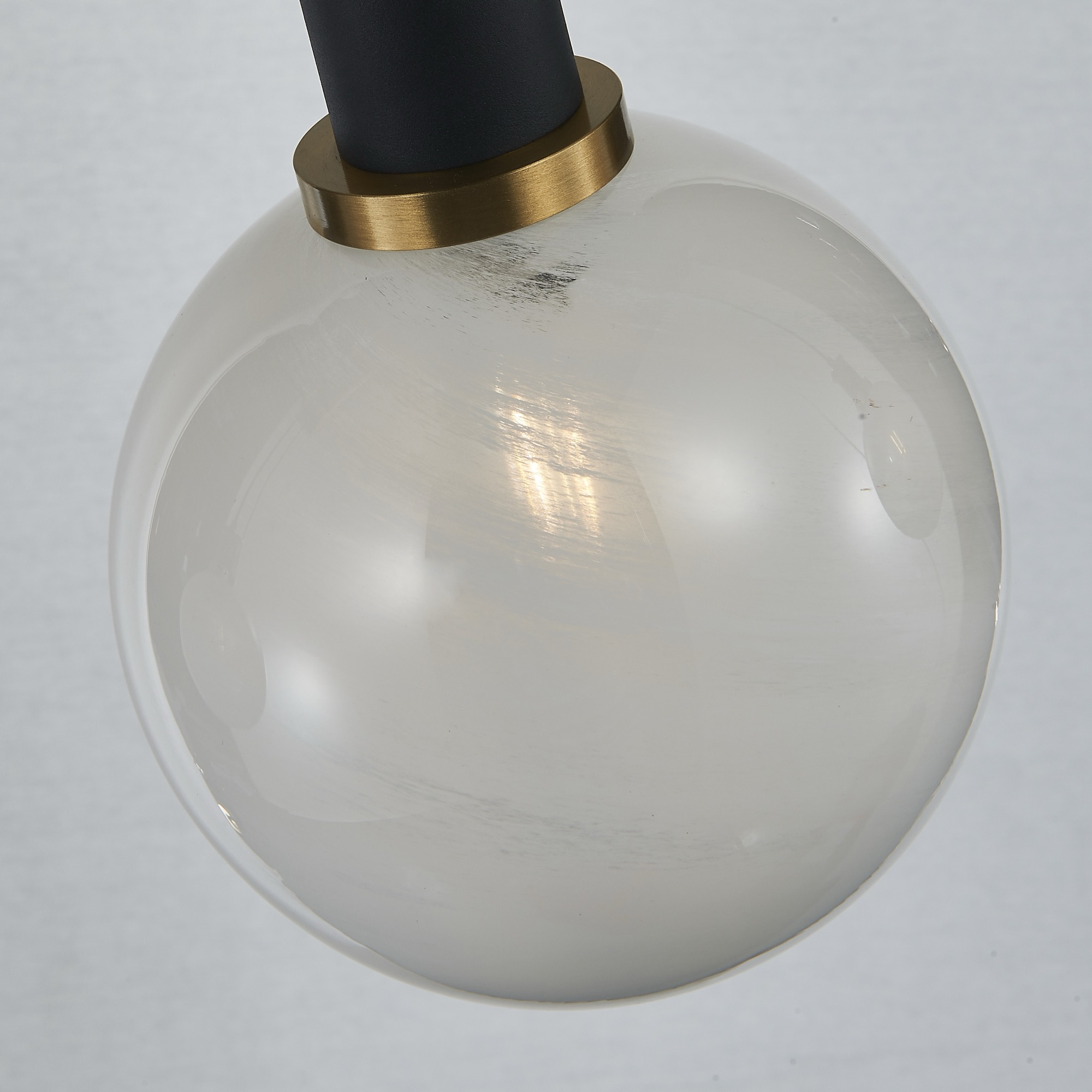 The Gem collection with “Blizzard” glassware exudes a sense of sophistication. Featuring a glossy textured white, the glass glows giving it a timeless and contemporary feel. The combination of the black framing with brushed brass is simply exquisite. This is the linear island 4 lite model chandelier.