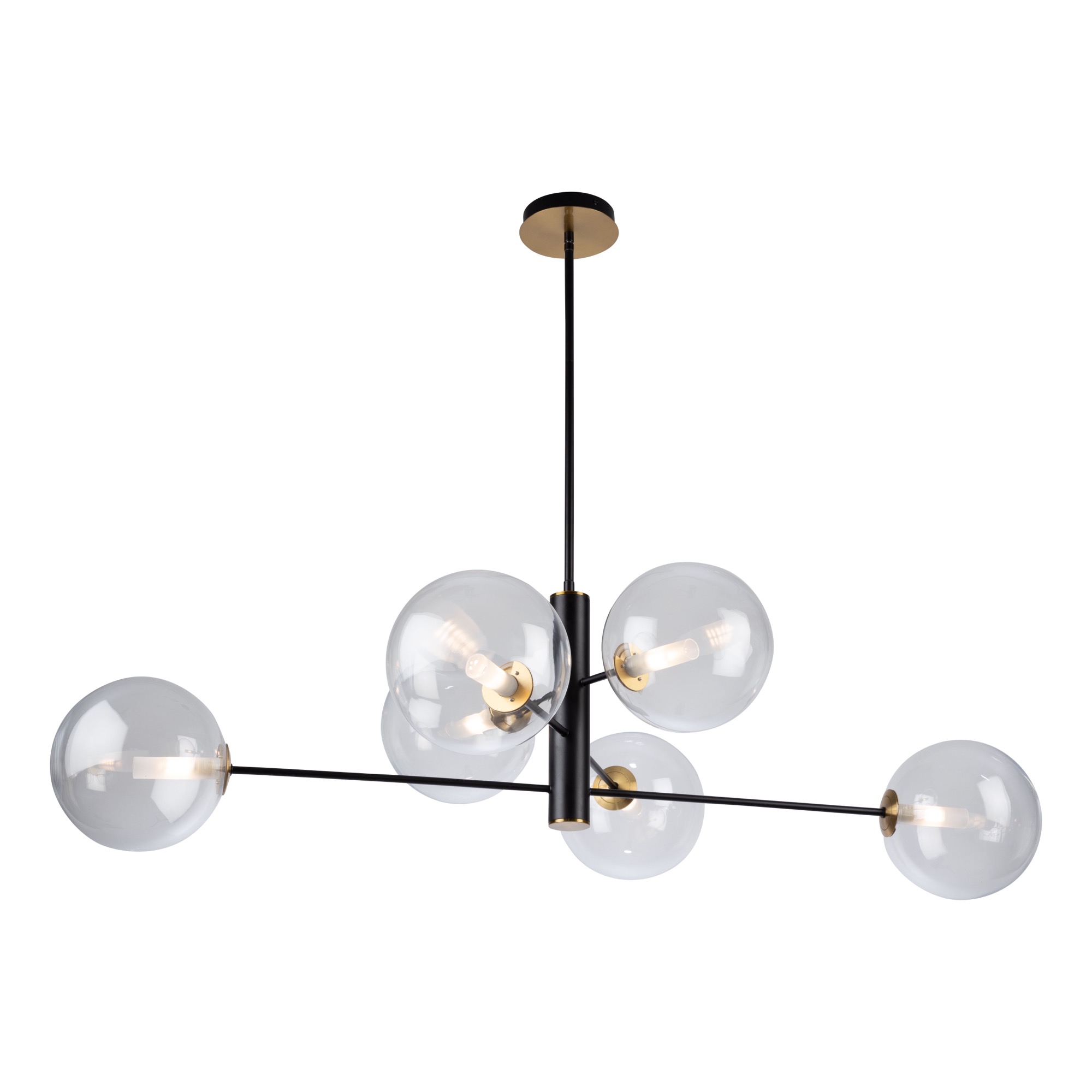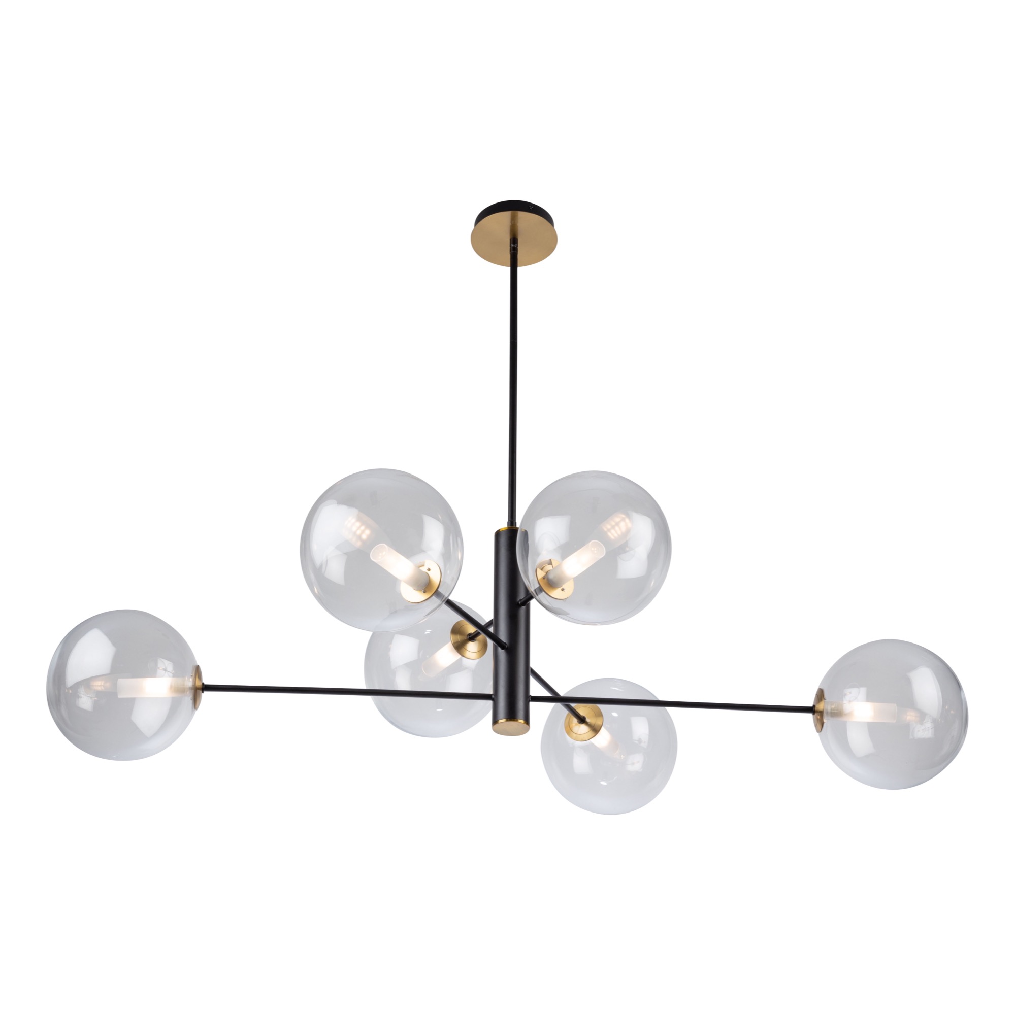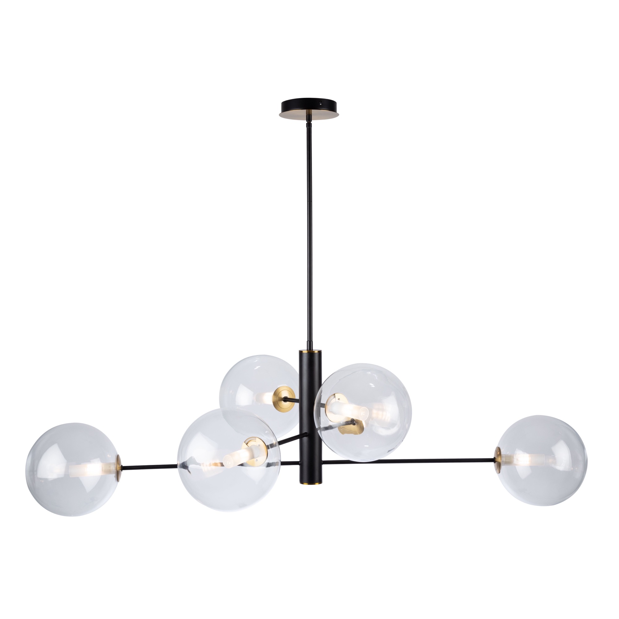 The Aurelia collection will help you reach your interior design goals in terms of lighting. The semi gloss black frame is complimented by plated brass accents. The brass cups hold the clear circular glassware which encases frosted glass cylinders which conceal the bulbs. This collection comes in many configurations to help decorate any section of your home.