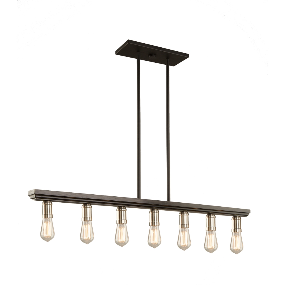 DESCRIPTION : Clean lines with a multi tone design, the 7 lite linear chandelier from the "Sandalwood Collection" is elegant and precise. Brushed Nickel version (also available in Satin Brass). Hand made in North America with pride.