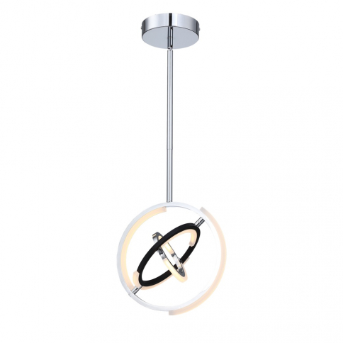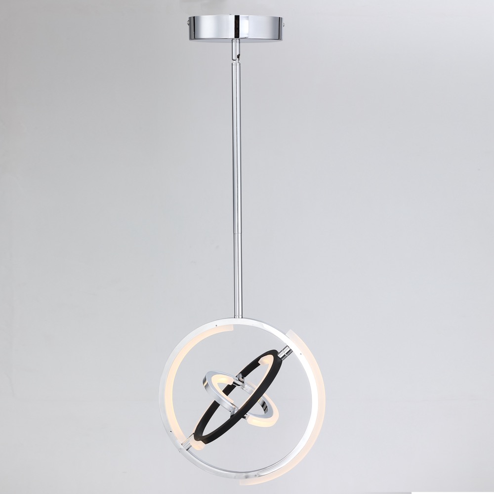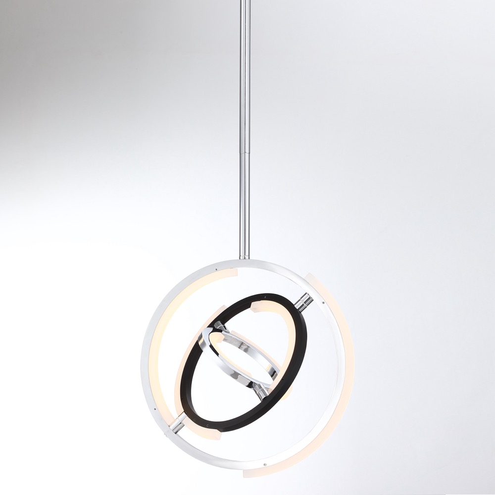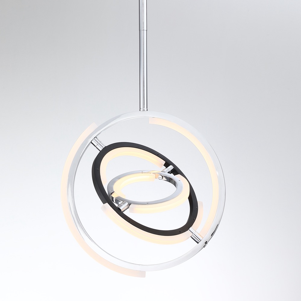 Designed by Kevin Kraemer, the orbs from the Trilogy collection are stunning. High quality polished nickel frames with black accents - illuminated by LED on certain parts of the framing. These orbs can be adjusted to your desired position since the spheres can be rotated. Mini 13" diameter pendant shown (larger small pendant also available at 17" diameter)