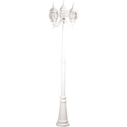 DESCRIPTION : Classico outdoor 3 lite post, European styled lantern-up with clear glassware and in white finish