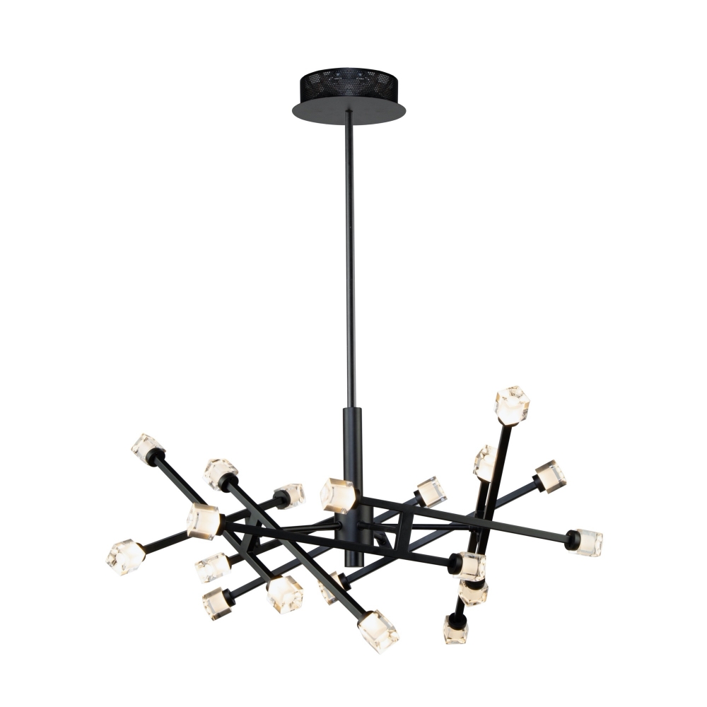 DESCRIPTION : The "Batton" collection mid size pendant features glass cubes illuminated by LEDs. The frame's arms can be configured as desired and has a black finish (includes hang straight).