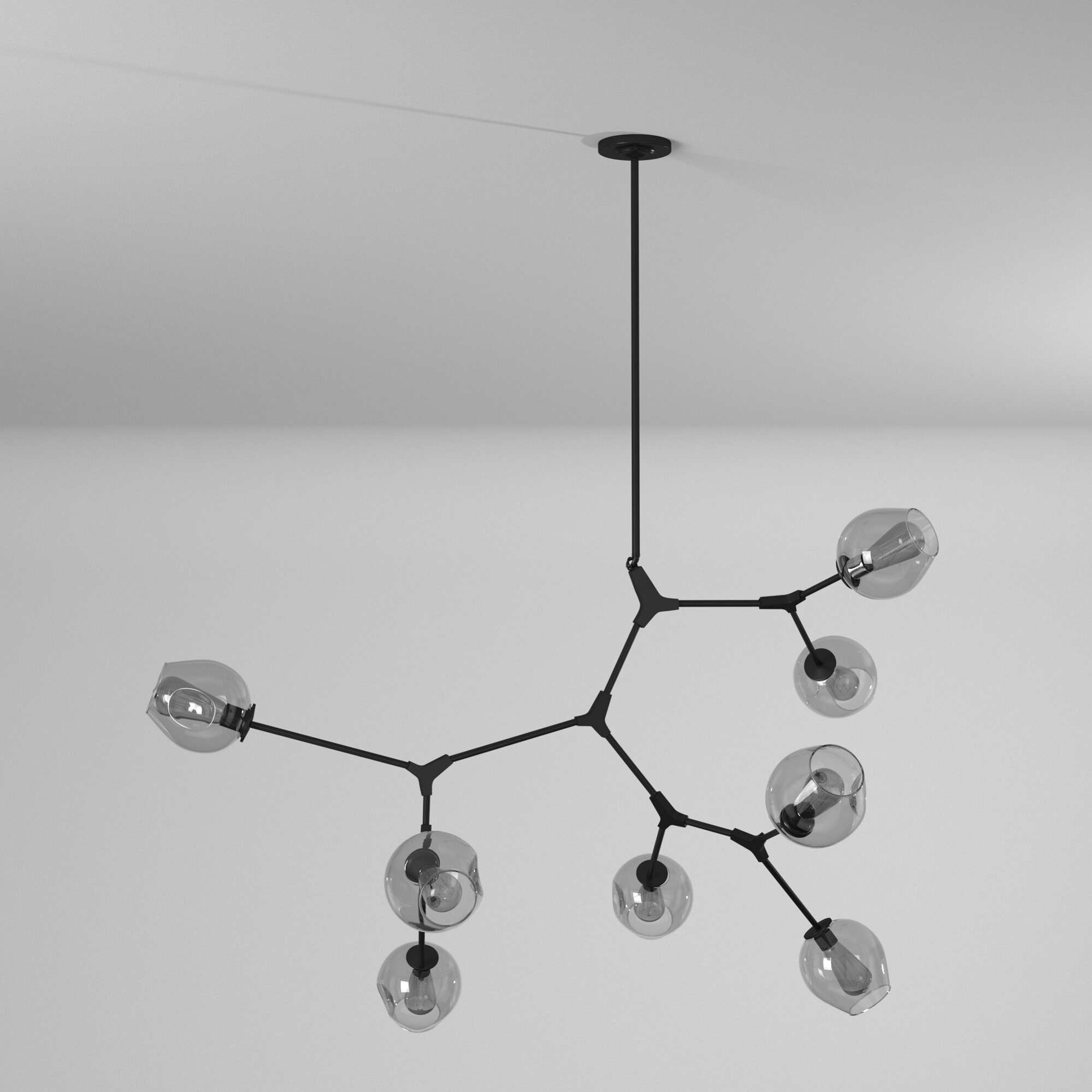 DESCRIPTION : The "Organic" collection features a dimple clear glass suspended on a multi direction black frame. All arms can be adjusted to a desired configuration. Comes with hang straight for sloped ceiling, and extra rods included for height adjustment. (Best suited with a vintage bulb - not included)