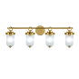 COLLECTION: Myla CATEGORY: Bathroom Vanity FINISH: Vintage Brass WIDTH: 33.8" BODY HEIGHT: 10.9" EXTENSION: 6.5" BULB TYPE: 4*60W E26 DELIVERED BRIGHTNESS: N/A COLOUR TEMPERATURE (CCT): N/A