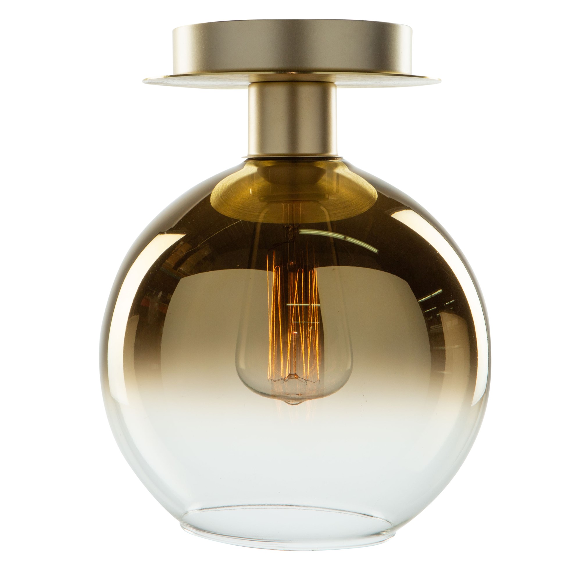 DESCRIPTION : From designer Steven Sabados [S&C], the "Morning Mist Collection" is an instant classic. The glassware is so unique in that the bottom is clear but as you reach the top part of the sphere it is plated with a gold semi transparent mirror. The frame is finished in a matte brass. The black wires are all height adjustable. This series has multiple configurations. Model shown is the single flush mount.