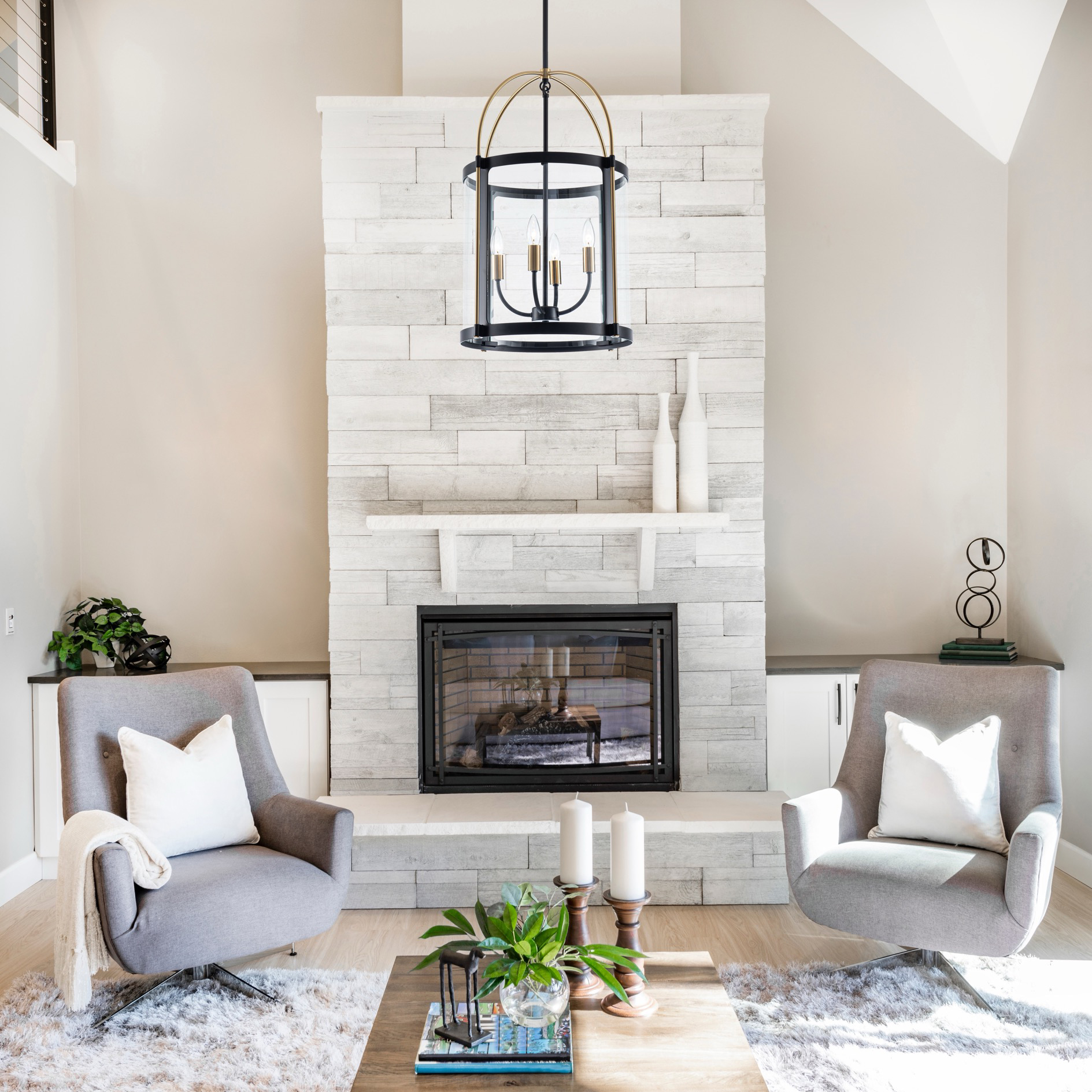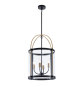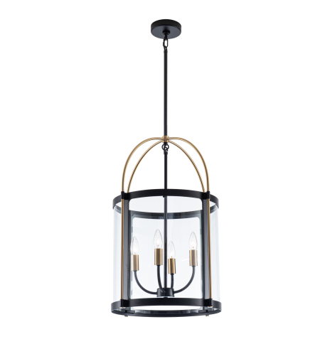 The Bonita Collection designed by Kevin Kraemer, features black frames with clear glassware and brass accents. The black metal frame provides a striking contrast to the warm brass accents, creating a visually stunning centerpiece for any space. Its intricate design, featuring a cage-like structure with glass panels, adds a touch of vintage charm while emitting a warm, inviting glow when lit. (4 lite - 17"D. lantern chandelier shown; smaller 13"D. also available)