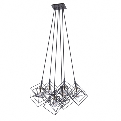 DESCRIPTION : Geometric in design the Artistry collection is meets the transitional type décor criteria. The outer frame is matte black and the interior is plated in polished nickel. Triple pendant shown. (Also available with harvest brass interior)