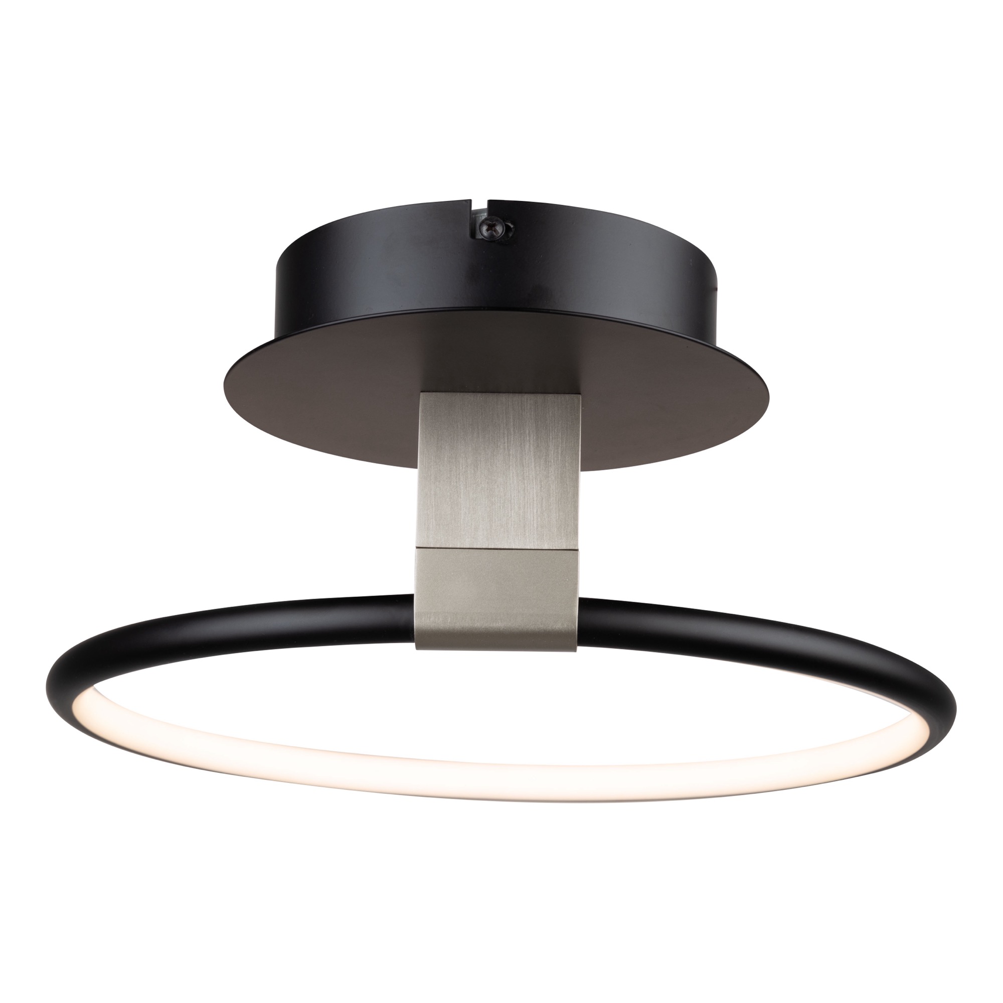 The Halo collection of semi flushmounts are all unique in their own ways. The main finish is black but has a brushed nickel holder which allows the user to rotate the LED illuminated ring. What a cool unit to place in any home.