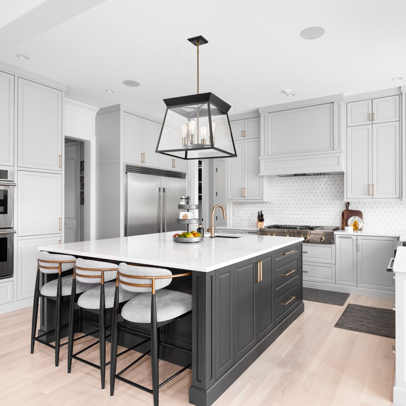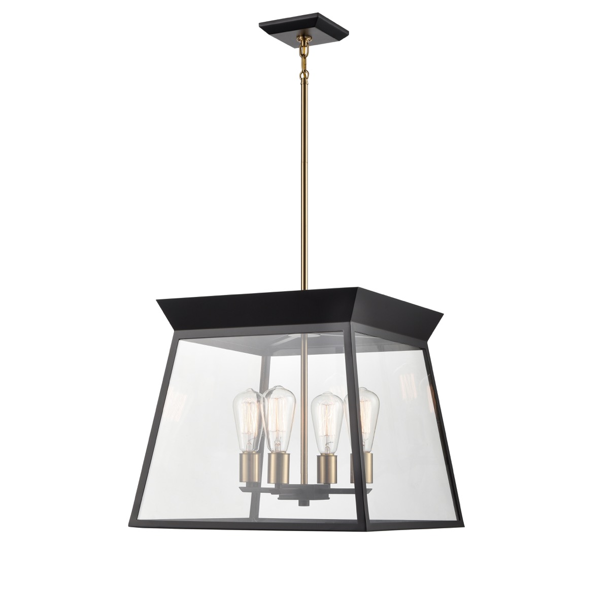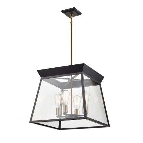 Combining two complementary colors allows for a striking and harmonious appearance. The Lucian collection in black with brushed brass accents adds depth and personality to any space. The model shown is a height adjustable 18" diameter chandelier. (Designed by Kevin Kraemer)