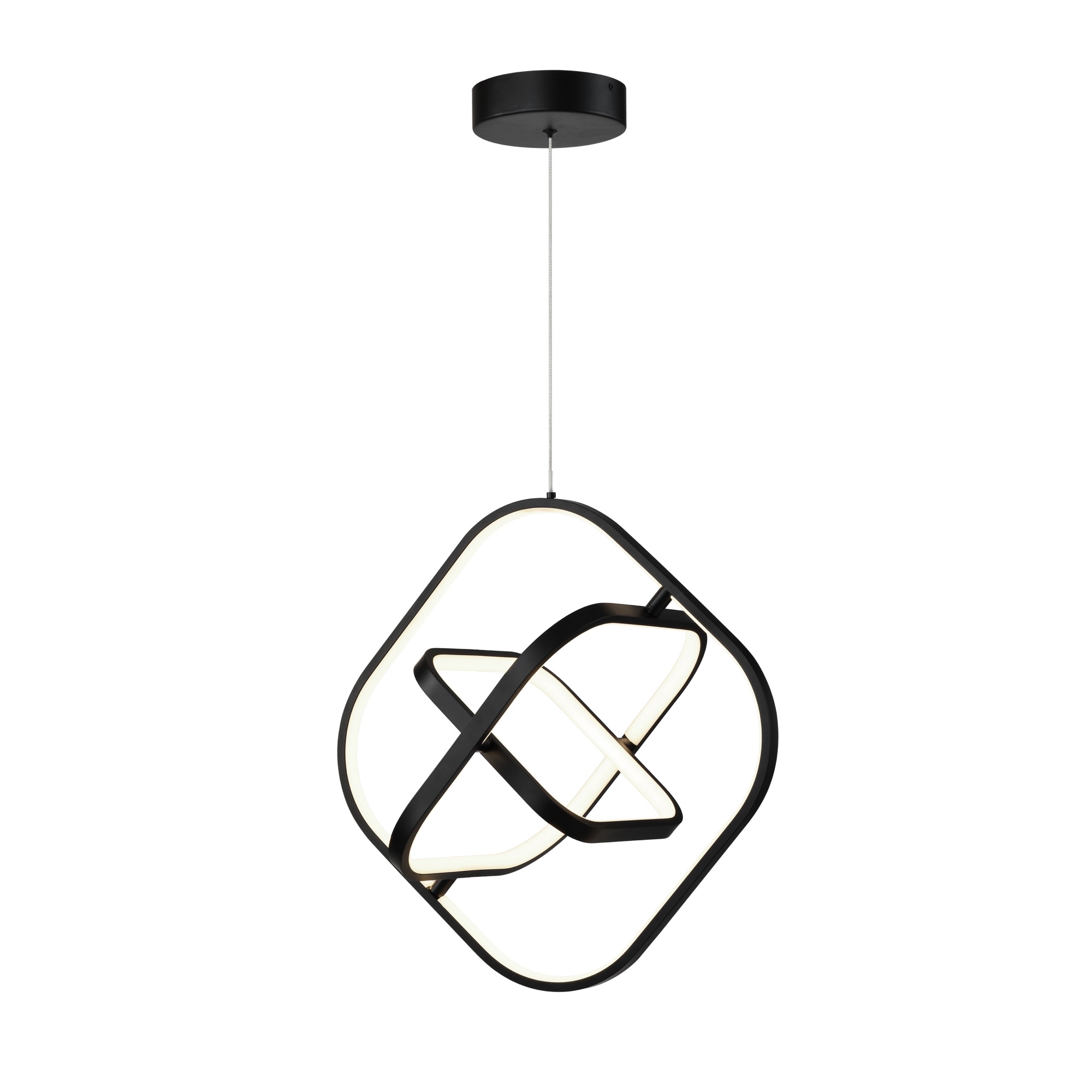 The Sienna Collection LED chandelier has a unique square shape with circular edges. (The interior can be rotated to any desired position). This collection is finished is a rich semi gloss black. Has a pushpin system on canopy for easy height adjustment.