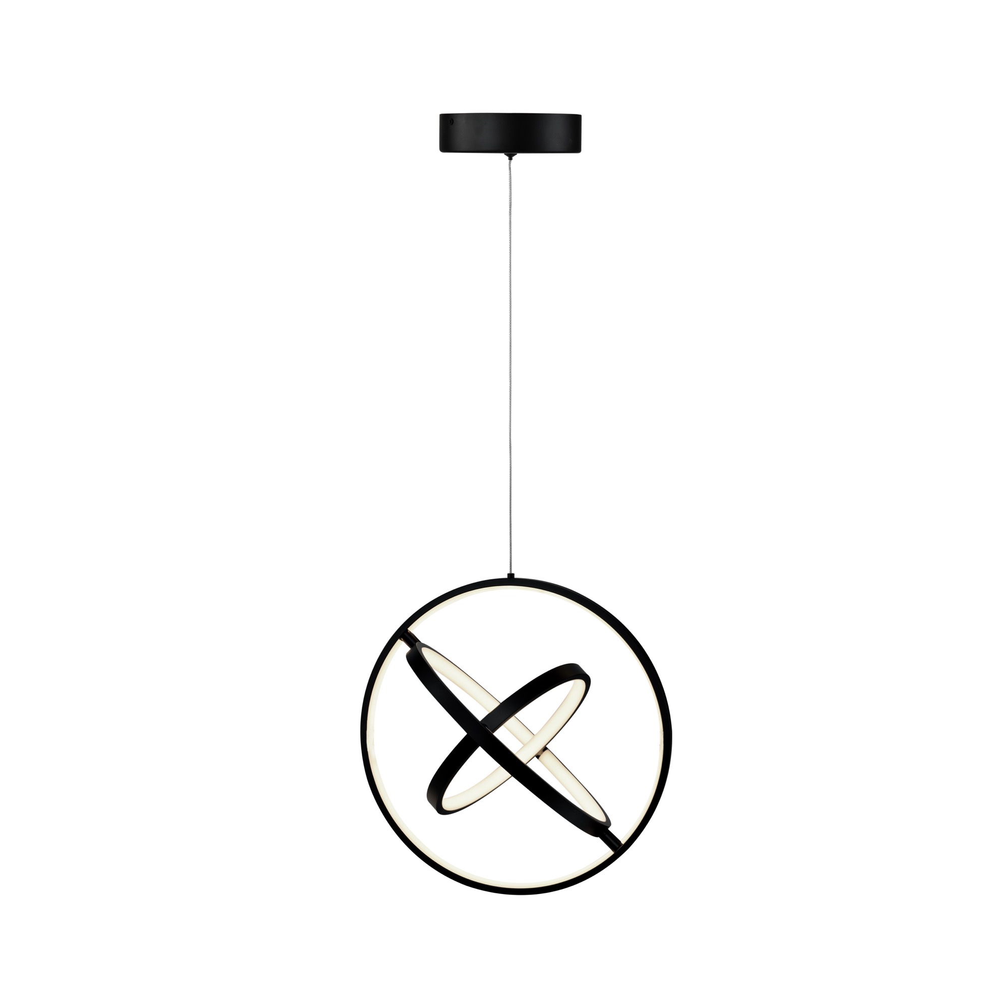 The Sienna Collection LED chandelier has an orb type design - The interior can be rotated to any desired position. This collection is finished is a rich semi gloss black. Has a pushpin system on canopy for easy height adjustment.