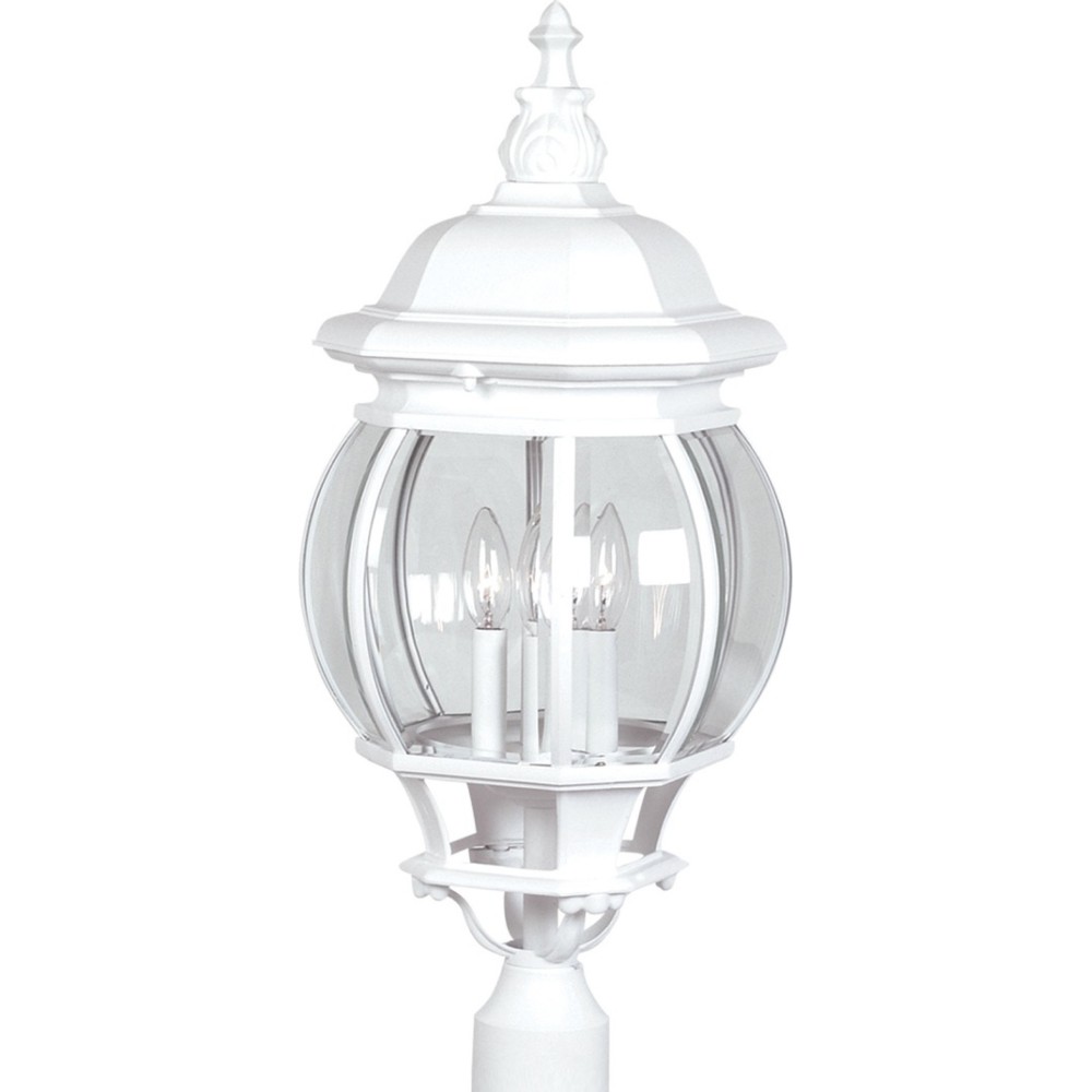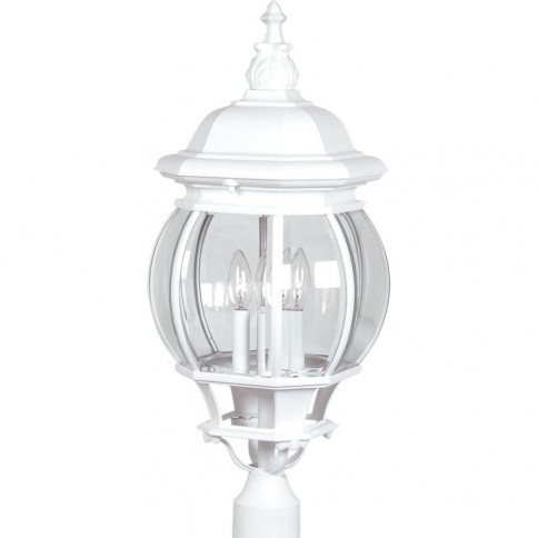 DESCRIPTION : Classico European styled large outdoor post mount with clear glassware in white finish