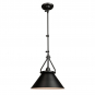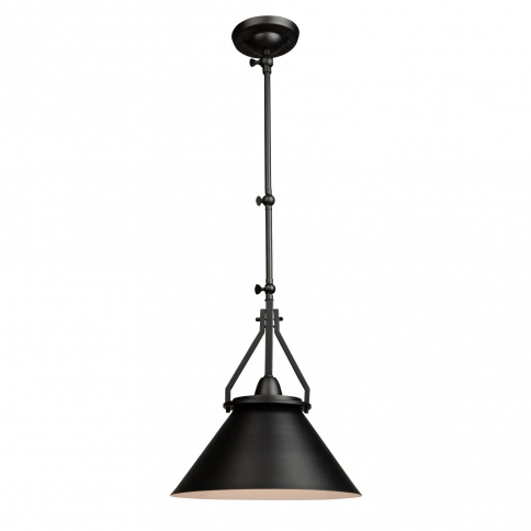 DESCRIPTION :This model from the "Brydon Collection" features a black metal shade with black arms and canopy. This design is industrial looking and has multiple hinges for adjustability. This model can be a wall bracket or straight rod pendant (extra 12" rod included for height if needed). If hanging as a wall sconce you can adjust the height and extension to your desired position.